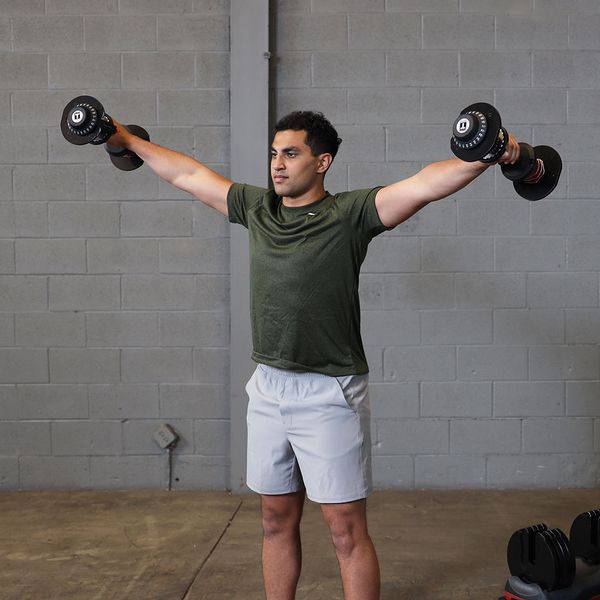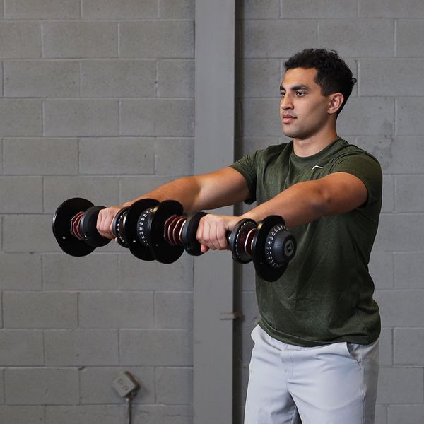• These adjustable dumbbells replace an entire rack, offering the functionality of 15 individual sets (900 lbs.) while minimizing space requirements.